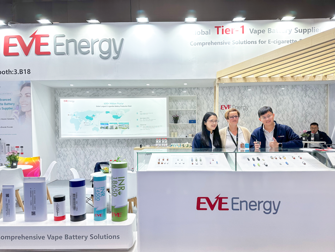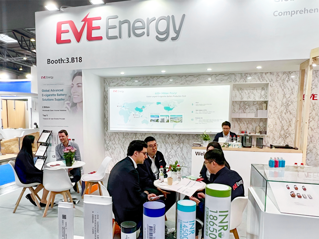 展会期间,亿纬锂能展台亮点纷呈。一次雾化器电池、二次雾化器电池、一体式HNB电池、分体式HNB电池等全矩阵产品同台亮相,以其高安全、高能量密度、长寿命、超快充、低自放电率、可拆卸等核心性能优势,吸引全球用户的广泛关注。