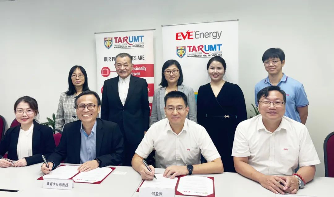 10月21日,亿纬锂能马来西亚公司(EVE Energy Malaysia Sdn. Bhd)与拉曼管理与工艺大学(以下简称'TAR UMT')在马来西亚槟城签署合作备忘录。此次合作备忘录的签署,旨在通过产学联合,搭建教育与产业融合的发展框架,推动实践性人才培养,促进双方资源共享、优势互补。