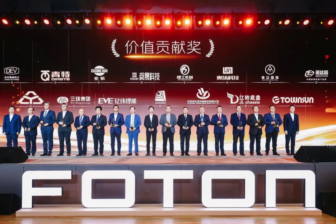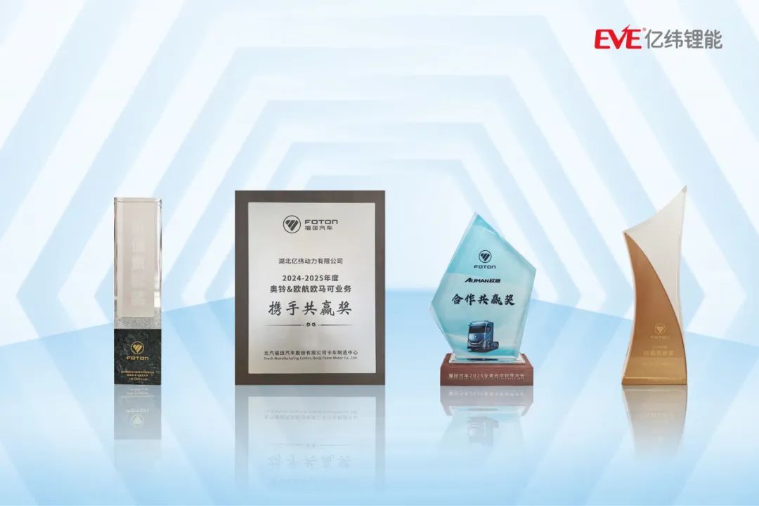 近日,以“把不可能变成可能”为主题的福田汽车2025全球合作伙伴大会在北京举行。亿纬锂能荣获福田汽车2024-2025年度价值贡献奖、图雅诺皮卡业务价值贡献奖、奥铃&欧航欧马可业务携手共赢奖、欧曼合作共赢奖等四项大奖,亿纬锂能高级副总裁朱延春、动力国内营销中心大客户销售中心总经理黄红良受邀出席大会。